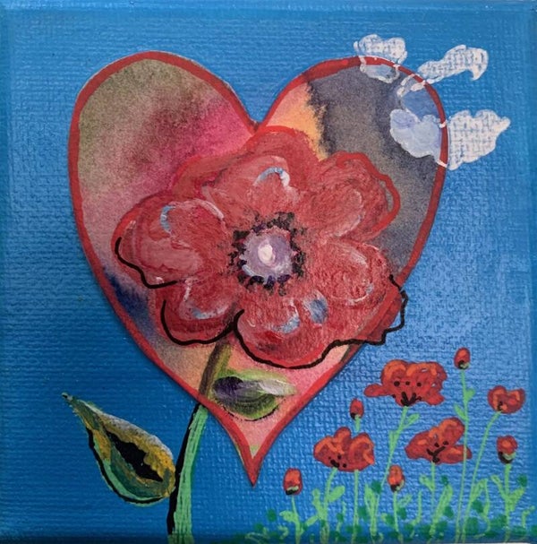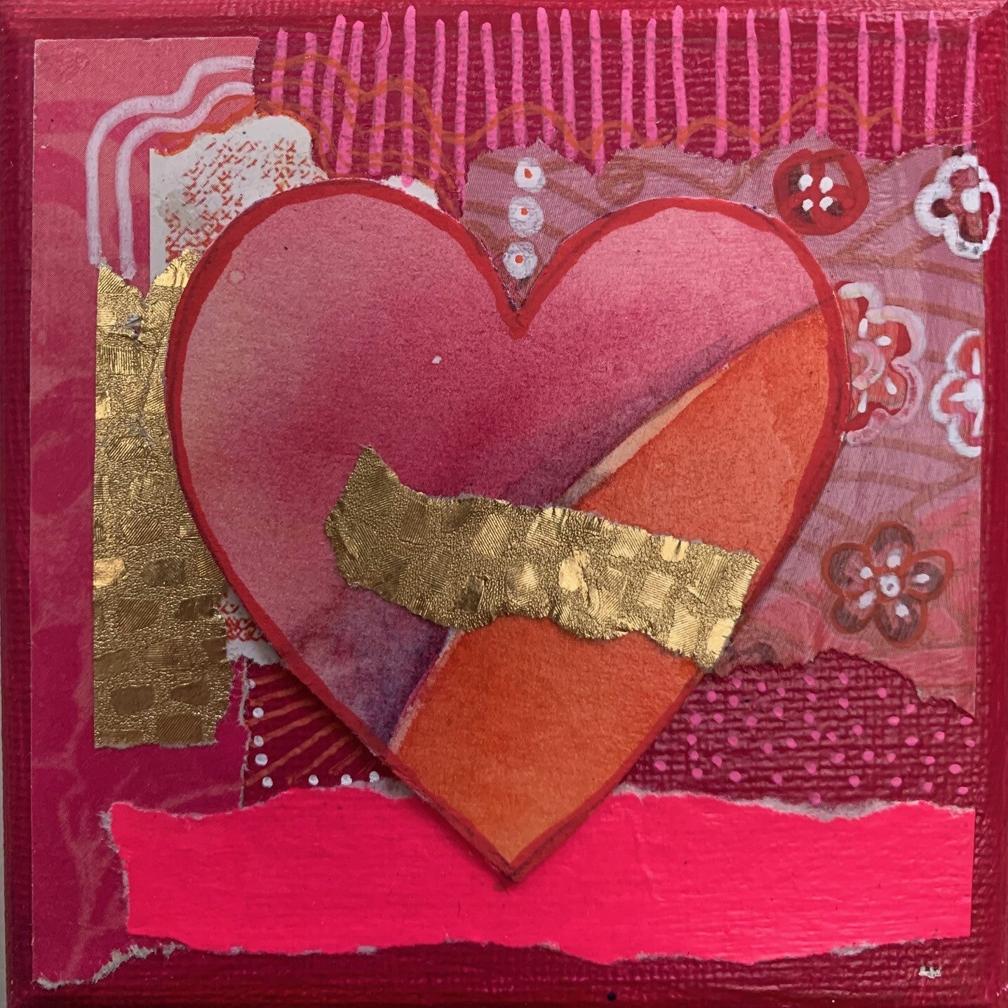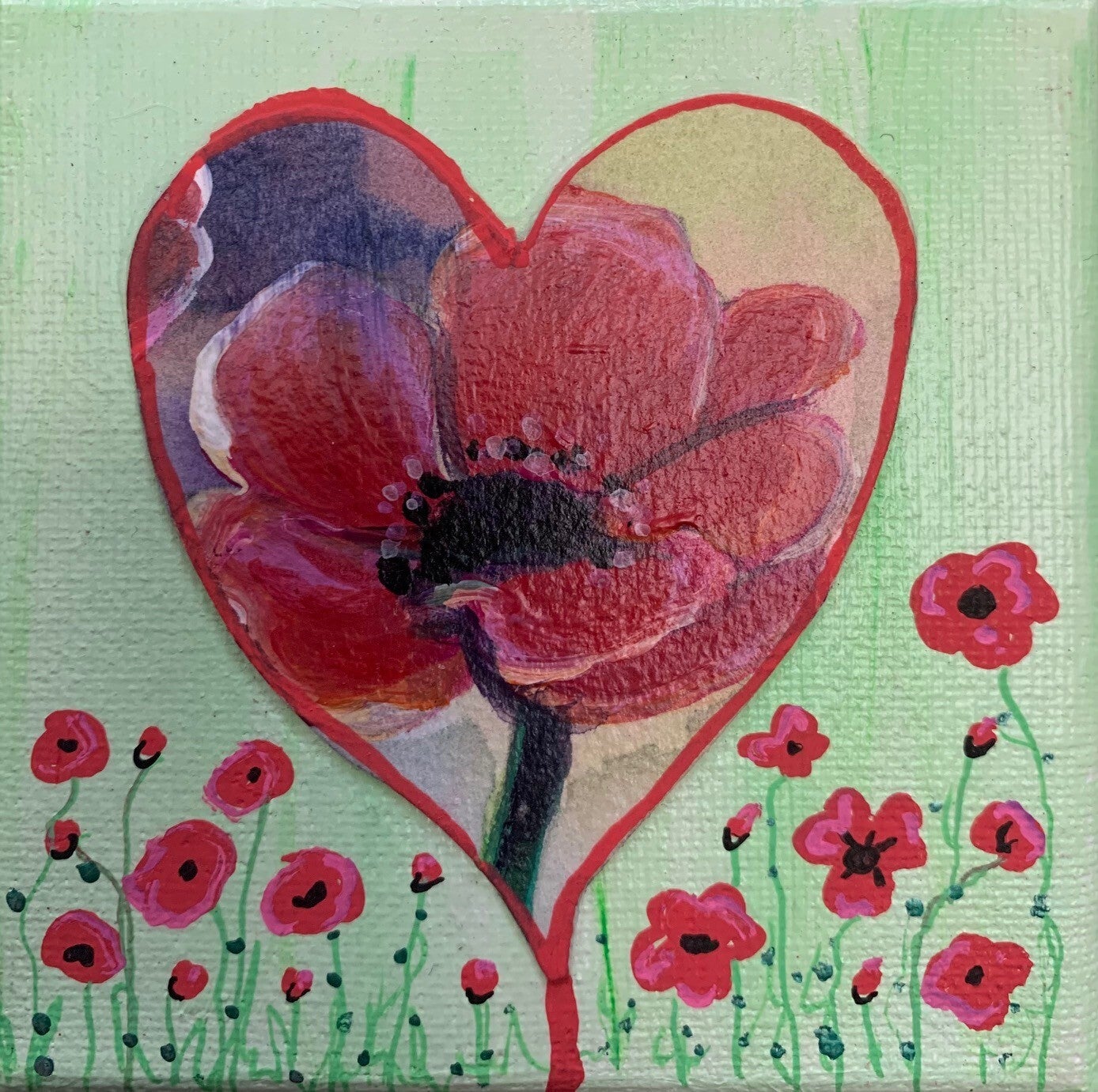 Hartjes op canvas 10x10 cm.