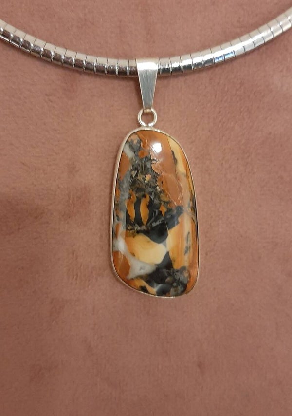Maligano Jaspis komt uit Indonesië / Sulawesi dat voor zover bekend de enige vindplaats is van deze prachtige steen. Eigenlijk is het geen Jaspis maar een steen die door erosie en het verschuiven van aardplaten ontstaan is. Vandaar de vele kleurstellingen van deze steen. Maar ja het beestje moet een naam hebben en men neigt er al snel naar om iets Jaspis te noemen, maar ook calciet is aanwezig in deze "Jaspis". Een van de kenmerken van deze steen is dat, ondanks dat de steen niet heel hard is deze toch prachtig gaat glanzen. Uniek sierraad.